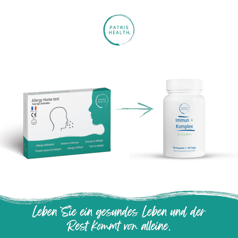 Mit dem Patris Health® IgE-Selbsttest können Sie bequem von zuhause feststellen, ob Ihre Beschwerden allergiebedingt sind – oder ergänzend durch unseren C-reaktives Protein Selbsttest auf Entzündungen prüfen.