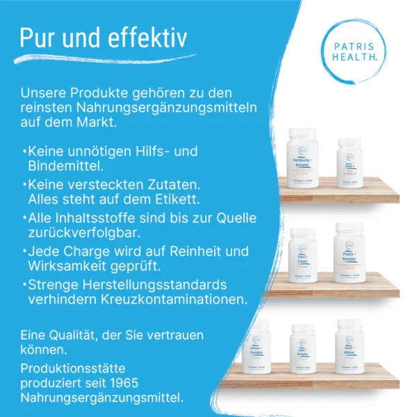 Sie können sicher sein, dass der Patris Health® Fertil+ Männer das hochwertigste Nahrungsergänzungsmittel ist.