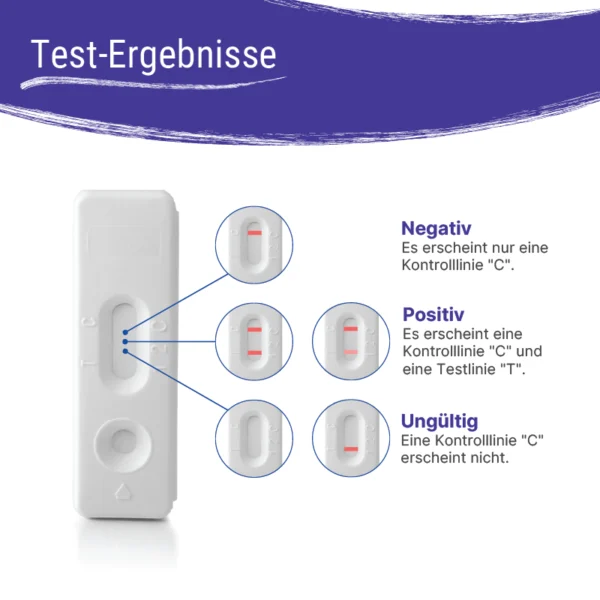 Die Farbintensität von Testlinie und Kontrolllinie kann unterschiedlich sein. Wenn die Linie sichtbar ist, sollten Sie das Ergebnis berücksichtigen.