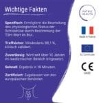 Der Patris Health® Schilddrüsen TSH Selbsttest wird in Frankreich mit hochwertigen Materialien nach ISO13485 hergestellt. Er ist in Deutschland CE0483-zertifiziert und von den europäischen Behörden für den Heimgebrauch zugelassen.