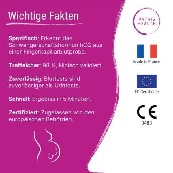 Wichtige Fakten zum Patris Health® Schwangerschafts-Bluttest – 98 % genau, Ergebnis in 5 Minuten