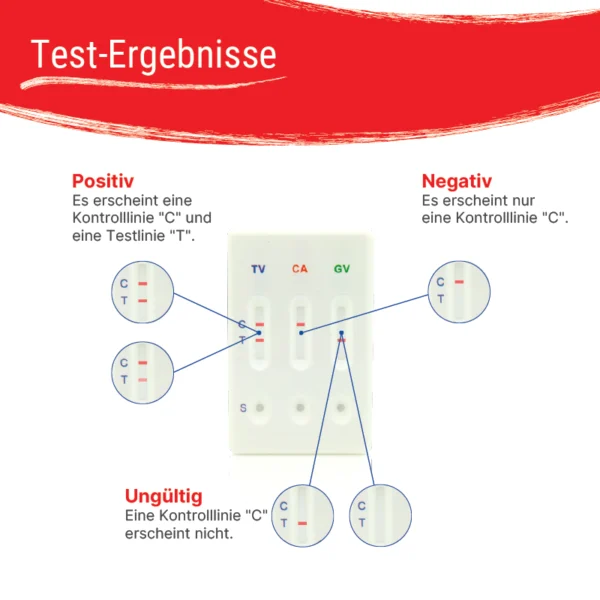 Ja, Sie können das Ergebnis für jeden Erreger separat ablesen. Ein Testgerät beinhaltet drei separate Tests, einen für jeden Erreger (3-in-1-Test).