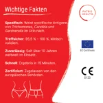 Der Test wird nach ISO 13485 hergestellt und ist konform mit der europäischen Richtlinie 98/79/EG über In-vitro-Diagnostika und von der Benannten Stelle 0123 für die Selbsttestung CE-zertifiziert.